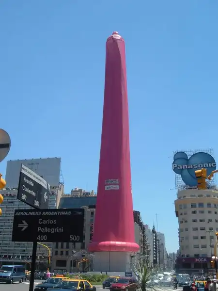 2. В рамках Всемирного дня борьбы со СПИДом на 67-метровый памятник-обелиск, олицетворяющий историю Буэнос-Айрес, надели самый большой презерватив в мире. Таким образом, руководство города хотело призвать молодежь к борьбе с «чумой 21 века».