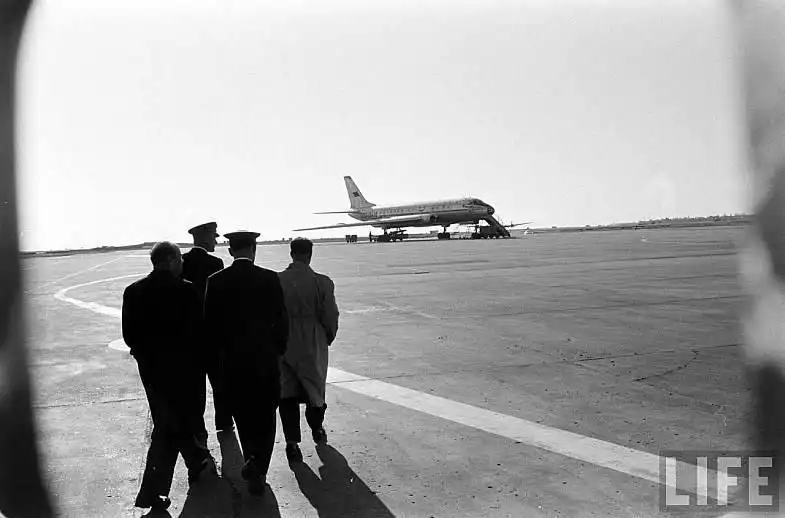 ТУ–104 так понравился Хрущёву, что он решил совершить свой визит в Великобританию в 1956 году именно на нём. Из–за вышеуказанных проблем его с трудом удалось отговорить от этого. Советская делегация отправилась в Лондон на крейсере. Но, чтобы доказать советское технологическое превосходство (британский Comet по–прежнему не летал), Хрущёв приказал пригнать ТУ–104 в Лондон.