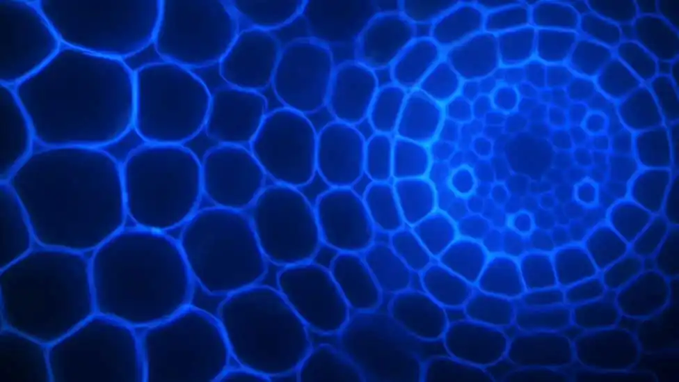 Корень антарктического растения аир, на котором видно расположение клеток. Благодаря этому расположению клеток растение эффективно поглощает питательный азот. А это, в свою очередь позволяет аире выигрывать соревнование с другими растениями в условиях низких антарктических температур. Фото: Пета Клоуд, Университет Западной Австралии.
