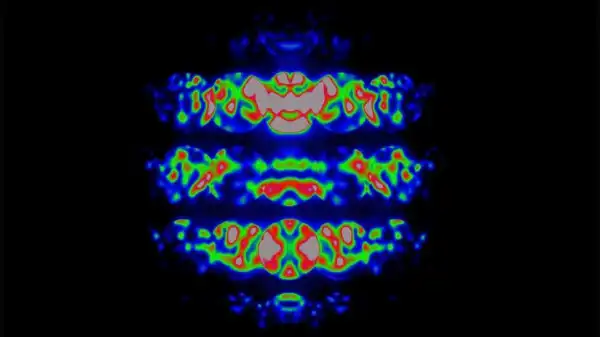 Картина дифракции электрона кристалла титаната стронция в электрическом поле, который показывает информацию об электрическом напряжении. Это помогает улучшить работу конденсаторов для всех видов электронных устройств. Фото: Эндрю Джонсон, Университет Западной Австралии