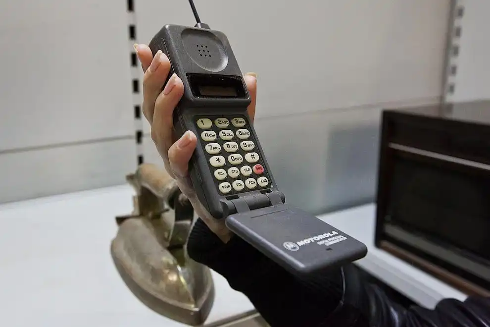 Знаменитая Моторола, одна из первых моделей сотовых телефонов в России. На обороте надпись: Made in USA: