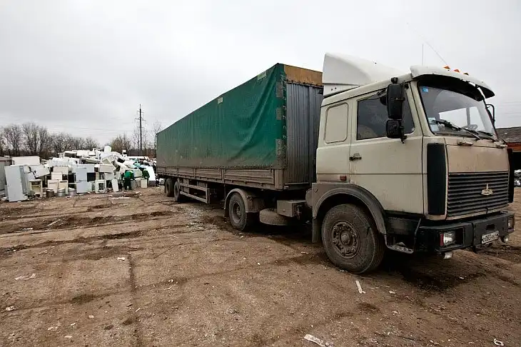 «Эльдорадо» заключила договор с компанией UKO, занимающейся утилизацией и переработкой техники на территории России. Начинается процесс здесь: сюда из самых разных мест приезжают фуры с собранной старой бытовой техникой.