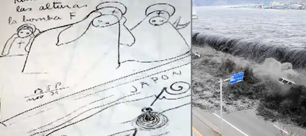 В заметках на полях он рассказал о том, что большая "Ф" взорвется и произведет много шума по всей земле. Не исключено, что под «Ф» он имел в виду японскую атомную электростанцию «Фукусиму-1».