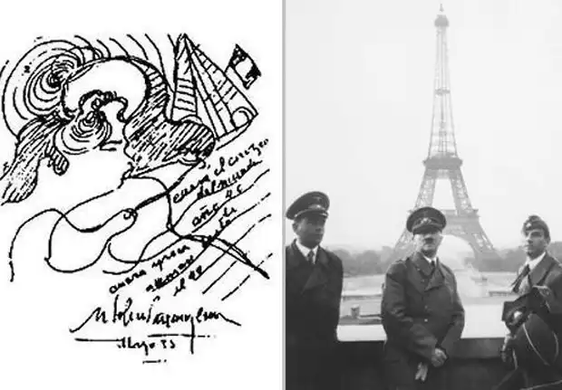 В 1938 году, еще до начала Второй Мировой войны, Парравичини уже знал о падении Франции перед лицом фашистской Германии. На рисунке пророка прекрасно различима Эйфелева башня, на фоне которой вырисовывается французский флаг.