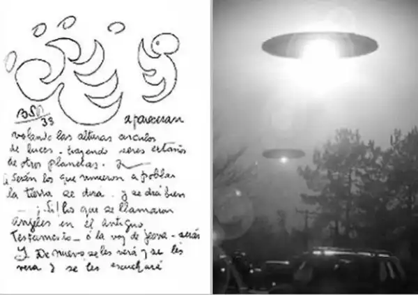 «Летающие тарелки в виде ярких круговых вспышек света будут навещать Землю, принося с собой странных существ с других планет. Это будут те, кто наводнит землю. Те, кто в Ветхом Завете называли себя ангелами и все их снова увидят и станут слушать» (1938).