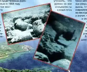 Это предсказание, сделанное Кейси незадолго до его смерти, казалось настолько невероятным, что ему почти никто не поверил. Однако другой ясновидец - магистр розенкрейцеров Раймон Бернар в своей книге «Невидимая империя», увидевшей свет в 1961 году, подтвердил это пророчество. И вот в 1968 году произошло удивительное событие. Французский водолаз Дмитрий Ребикофф заметил под водой вблизи острова Северный Бимини, относящегося к группе Багамских островов в Атлантическом океане, каменные геометрически правильные плиты!