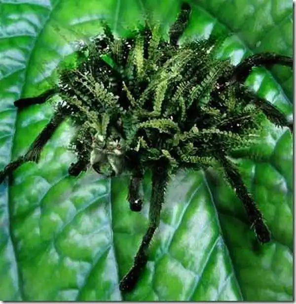 Папоротниковый паук уникален для этого списка, так как он единственный сочетает в себе животное и растение. На момент написания этой статьи это был единственный удачный эксперимент по скрещиванию растения с животным. Этот паук – результат скрещивания тарантула и папоротника. Целью такого скрещивания было изучение уровня выживаемости паука с встроенным камуфляжем по отношению к паукам без него. Эти исследования естественного отбора проводились в Массейском университете в Новой Зеландии. Результаты исследования ещё не опубликованы.