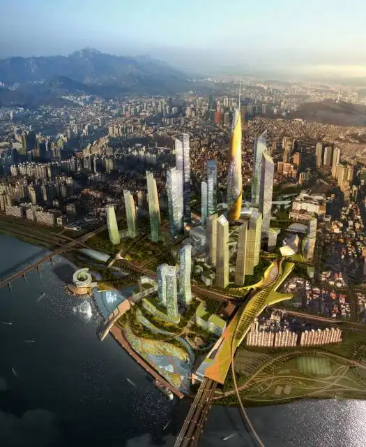 Более того, если принять во внимание все факты, архитекторы MVRDV вряд ли могли не думать об атаках 11 сентября. В конце концов, жилые башни должны были быть построены на въезде в так называемый Yongsan Dream Hub: комплекс офисных башень, который был разработан никем иным как Daniel Libeskind - дизайнером первого "генерального плана" по реконструкции "нулевой точки" - места падения башен 9/11. И действительно , как показывает картинка внизу, Yongsan Dream Hub разработанный Daniel Libeskind явно напоминает нижний Манхеттен.