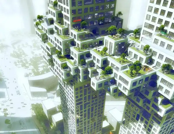 Голландские архитекторы создали небоскребы, похожие на падающие башни-близнецы.