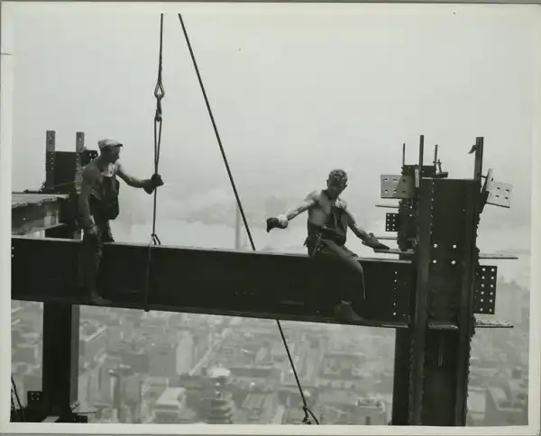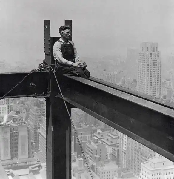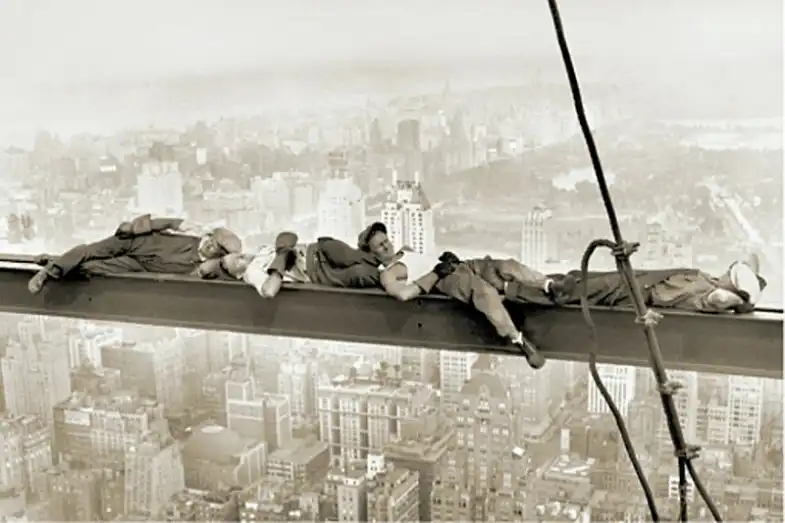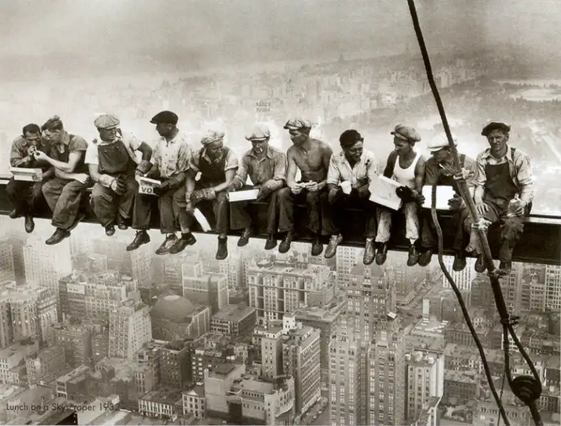 Мне много лет не давала покоя вот эта фотография, часто встречающаяся на постерах и обложках. И сегодня все прояснилось. Конкретно вопрос внутри меня был: как эти мужчины попали на балку .Я боюсь высоты. Не то чтобы до умопомрачения, но мои редкие сюрреалистические сны связаны с этим явлением страха. При просмотре фото и чтения текста у меня натурально потели ладони от страха :eek: