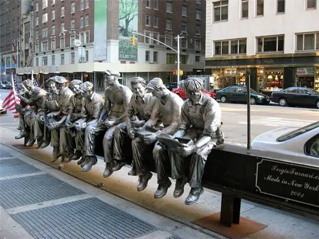 В Нью-Йорке на 6-ой авеню есть памятникам этим ребятам, установлен в 2001 г. Моделью стала самая известная фот-ка, она в здесь в превью первая. Так вот, сделали памятник сначала точно так на фото, т.е. 11 чуваков сидят на балке. А потом самого крайнего справа убрали под корень. И только из-за того, что у него в руках бутылка виски!!!Я понимаю если б это сделали у нас во времена Горбачева, но у них в 2001!! Видимо не хотели разрушать легенду про бравых парней. Теперь это 10 вполне приличных ребят сидящих на стальной балке. Нормально. Но как-то обидно.