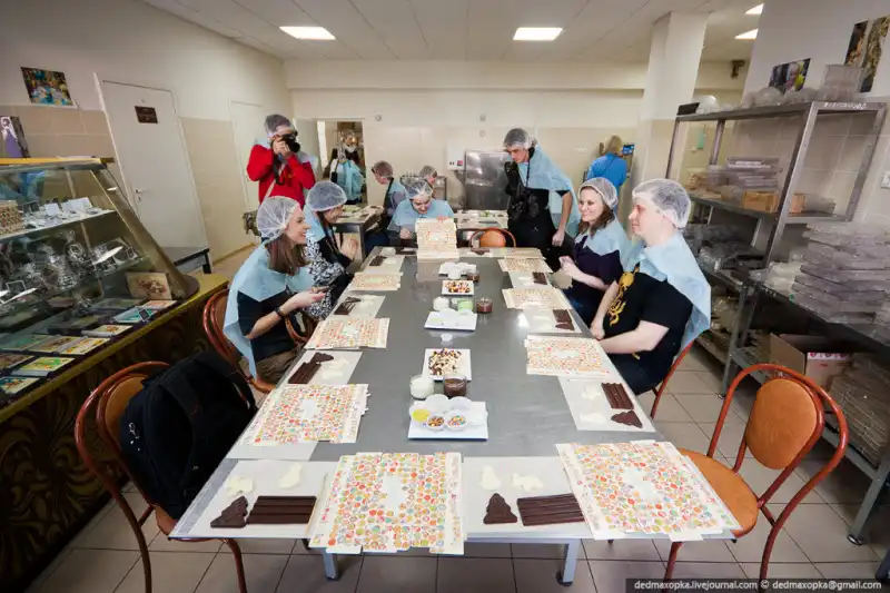 Наверно, мечта многих - попасть на шоколадную фабрику. Её легко осуществить, судя по тому, что Елисеевский в день проводит несколько экскурсий.