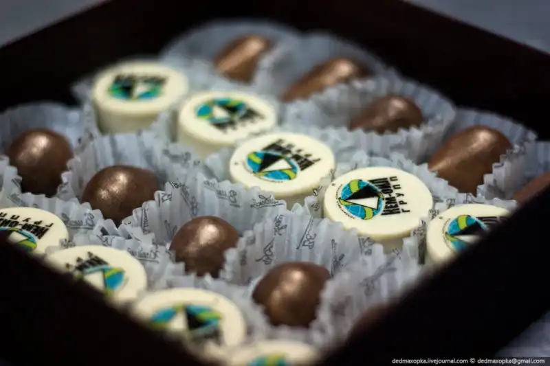 52. А это конфеты в виде капли нефти для нефтяной компании