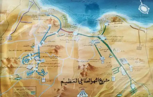 Великая рукотворная река неспроста названа самым большим ирригационным проектом в мире. Некоторые вообще считают ее крупнейшим инженерным сооружением на планете. Сам Каддафи именовал свое творение восьмым чудом света. Сейчас эта сеть включает 1300 скважин глубиной 500 метров, четыре тысячи километров проложенных под землей бетонных труб, систему насосных станций, резервуаров-хранилищ, центры контроля и управления. Ежедневно по трубам и акведукам рукотворной реки протекает шесть с половиной миллионов кубометров воды, снабжая города Триполи, Бенгази, Сирт, Гарьян и другие, а также зеленеющие посреди бывшей пустыни поля. В дальнейшем ливийцы намеревались орошать 130- 150 тысяч гектаров культивируемых земель и, помимо Ливии, включить в эту систему другие африканские страны. В конечном счете Африка не просто перестала бы быть вечно голодающим континентом, но даже сама начала бы экспортировать ячмень, овес, пшеницу и кукурузу. Завершение проекта планировалось через 25 лет, но...