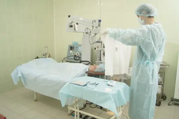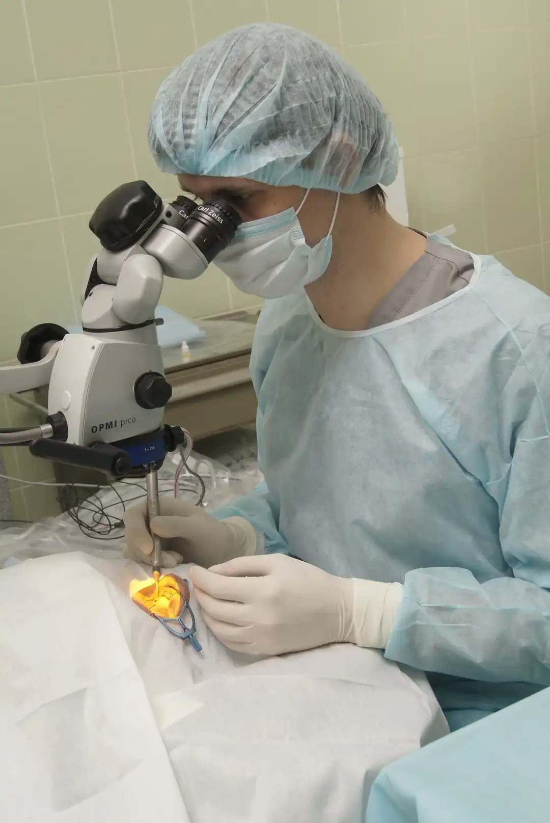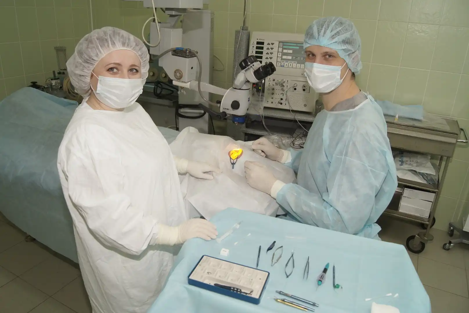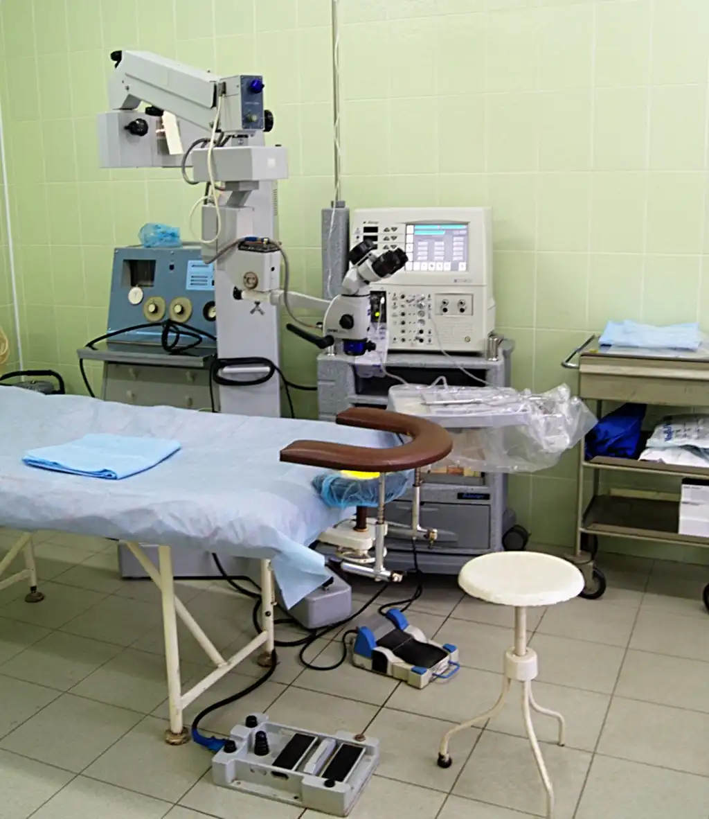 В офтальмологическом отделении свои особенности: все операции выполняются под большим увеличением при помощи микроскопа и для освещения используют яркий свет.