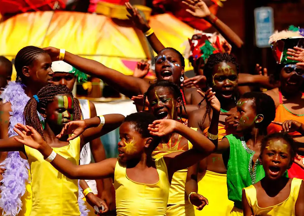 10. Девушки танцуют под палящим летним солнцем во время Новогоднего карнавала на улицах Йоханнесбурга, ЮАР. Первый карнавал прошел в 2004 году в духе бразильского. Его цель – укрепить лидерство и креативность среди населения. (Kim Ludbrook / EPA)