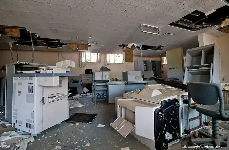 Как только принимается решение о банкротстве или закрытии того или иного объекта - он так и бросается со всем своим содержимым, земля дорогая, налоги очень высоки и если место не бойкое, то до смены владельцев может пройти ума времени. Иногда такая участь постигает больницы и школы в раонах, где сильно сократилось население из-за оттока в города.