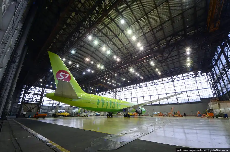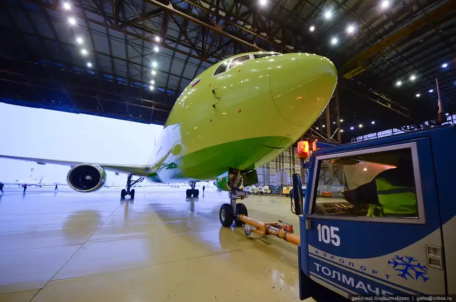 В 1964 году в аэропорту "Толмачево" города Новосибирска открылся крупнейший за Уралом авиационный ангар. Ангар принадлежит компании "Сибирь-Техник" входящая в группу компаний S7. Здесь выполняется техническое обслуживание самолётов Airbus А-310,319,320,321, Boeing В-737 и 767. Размеры ангара 137 на 72 метра, что дает возможность для одновременного технического обслуживания до шести воздушных судов(в том числе, двух широкофюзеляжных). Высота сооружения - 30 метров.