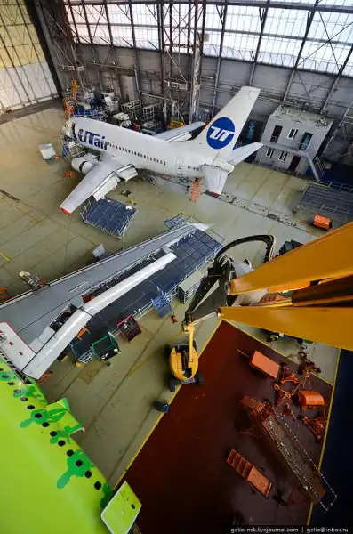 Здесь проверяется силовой набор конструкции планера, крыла и пилонов двигателей, проводится рентгеноскопия и другие сложные методы неразрушающего контроля. (Когда снимают закрылки, на местах крепления оставляют мешочки, куда эи складывают элементы крепления. Чтоб не потерять)