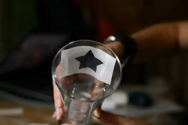 Довольно простой способ сделать новогодние стаканчики своими руками.Для этого нам понадобится обычный стакан без рисунков, плотный лист бумаги, лезвие, прозрачный клей на водной основе и блестки.