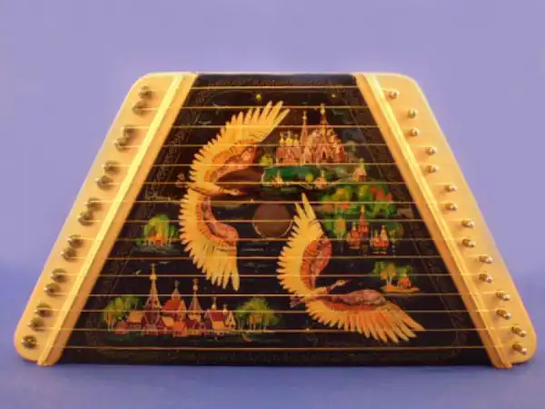 Гусли - струнный музыкальный инструмент, наиболее распространён в России. Является наиболее древним русским струнным щипковым музыкальным инструментом. Различают крыловидные и шлемовидные гусли. Первые, в более поздних образцах, имеют треугольную форму и от 5 до 14 струн, настроенных по ступеням диатонической гаммы, шлемовидные - 10-30 струн такой же настройки. На крыловидных гуслях (их также называют звончатыми) играют, как правило, бряцая по всем струнам и глуша ненужные звуки пальцами левой руки, на шлемовидных, или псалтыревидных, струны защипывают обеими руками.