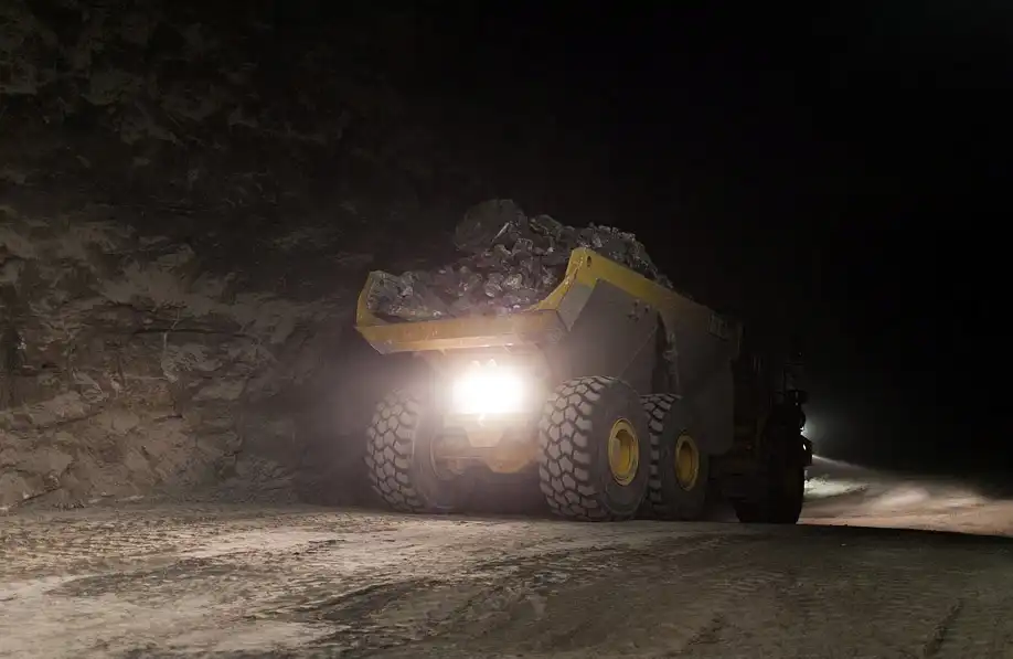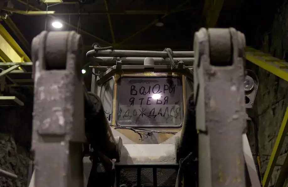 Первый ствол был построен в 1947 году. Транспортировка породы в те годы осуществлялась только вагонетками. Следующий этап эволюции - дизельный транспорт. Сейчас по шахте ездят самосвалы, а добытое сырье подается наверх специальным конвейером, в ленте которого устроены "ковши". По рельсам теперь возят только взрывчатку на подземный склад.
