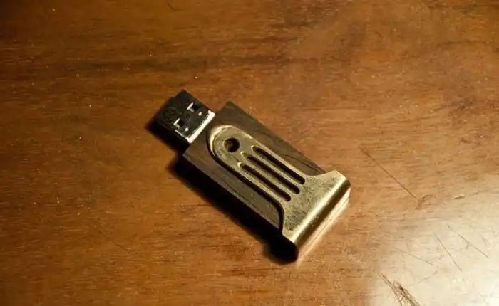 тоже делал деревянные корпуса, один из бука, второй из бамбука, и тоже была проблема с колпачком. а тут хитрая приспособа придумана! здорово! кстати, тоже флешку просохатил... (