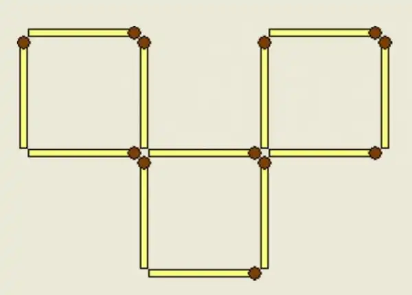 Переложите две спички из девяти так, чтобы получилось три квадрата одного размера. Гнуть, ломать и перекрещивать спички нельзя.
