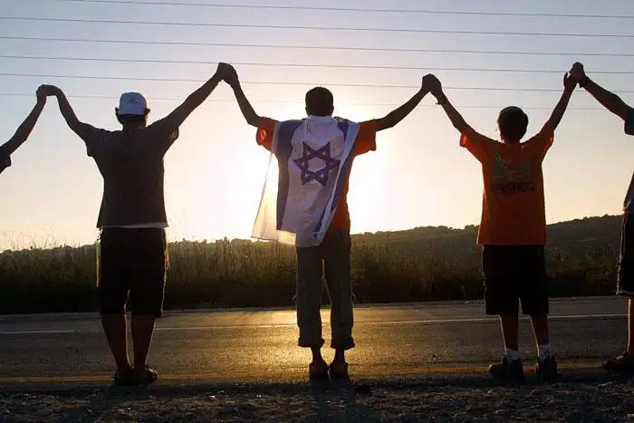 Акция в знак протеста против ликвидации еврейских поселений в секторе Газа в этот день собрала, по разным оценкам, от 130 до 200 тысяч человек. Чтобы выразить свое недовольство планами премьер-министра Ариэля Шарона вывести войска из сектора Газа и эвакуировать с этих земель поселенцев, участники манифестации выстроились живой цепью от поселения Ниссанит на севере Газы, до самой Стены плача в Иерусалиме. Как сообщало в тот день BBC, первым в цепи стоял Шамир Ицхак, вынужденный бежать из сектора Газа в 1948 году, когда туда вошли египетские войска, а замыкала его шестилетняя внучка Иэль Бетер, положившая ладонь на камни священной стены.