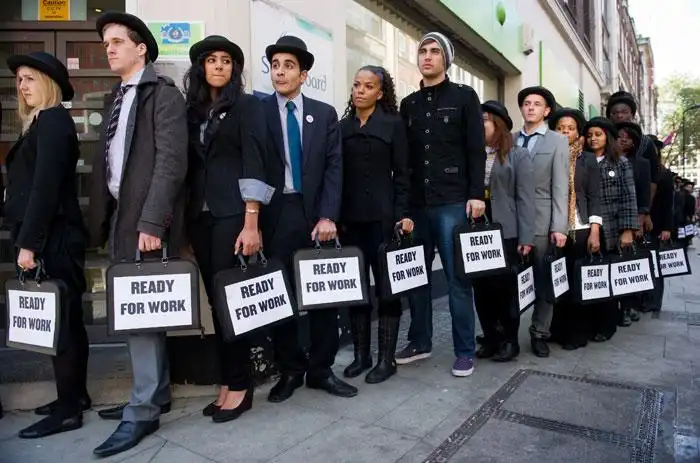 Британцы за последние несколько лет привыкли к тому, что у офисов по трудоустройству время от времени выстраиваются довольно длинные очереди. Но таких, как 11 октября прошлого года, они еще не видели. В этот день несколько тысяч молодых британцев с одинаковыми портфелями в руках, на которых красовалась надпись «Ready for Work», образовали живую цепь, соединившую между собой конторы по учету безработных. Тем самым они попытались обратить внимание правительства на проблему с поисками работы, которые испытывает более миллиона британцев в возрасте от 16 до 24 лет. Месяц спустя вице-премьер Великобритании Ник Клегг заявил, что уровень безработицы среди молодежи «игнорировать нельзя» и что страна не сможет преодолеть последствия мирового экономического кризиса, если не решит этот вопрос.