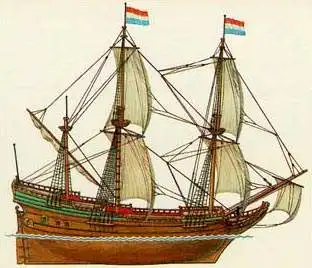 Первый флейт был построен в 1595 году в городе Хорне, центре судостроения Голландии, в заливе Зсйдер-Зе. Парусное вооружение фок- и грот-мачт состояло из фока и грота и соответствующих марселей, а позже на больших флейтах и брамселей. На бизань-мачте выше обычного косого паруса поднимали прямой парус крюйсель. На бушприте ставили прямоугольный парус блинд, иногда бом-блинд. На флейтах впервые появился штурвал, что облегчило перекладку руля. Флейты начала XVII века имели длину около 40 м, ширину около 6,5 м, осадку 3 - 3,5 м, грузоподъемность 350-400 т. Для самообороны на них устанавливали 10 - 20 пушек. Экипаж состоял из 60 - 65 человек. Суда этого типа отличались хорошими мореходными качествами, высокой скоростью, большой вместимостью и использовались, главным образом, в качестве военно-транспортных. На протяжении XVI-XVIII веков флейты занимали господствующее положение на всех морях.