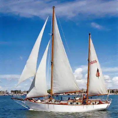 Шхуна (англ. schooner) - тип парусного судна, имеющего не менее двух мачт с косыми парусами. По типу парусного вооружения шхуны делятся на гафельные, бермудские, стаксельные, марсельные и брамсельные. Брамсельная шхуна отличается от марсельной наличием брам-стеньги и еще одним дополнительным прямым парусом - брамселем. При этом в ряде случаев марсельную и брамсельную двухмачтовые шхуны (особенно с брифоком) можно спутать с бригантиной. Независимо от типа косых парусов (гафельных или бермудских) шхуна может быть и марсельной (брамсельной). Первые суда с шхунным такелажем появились еще в XVII веке в Голландии и Англии, но широкое применение шхуны получили в Америке. Они имели две мачты с гафельными парусами и использовались для каботажных перевозок. В конце XIX века конкуренция пароходов привела к необходимости сокращения команд судов. Благодаря простоте парусного вооружения и легкости управления именно шхуны смогли выстоять в этой борьбе. В основном строились двух- и трехмачтовые шхуны, реже четырех-, пяти- и шестимачтовые. А в 1902 году в городе Куинси (США) на воду спустили единственную в мире семимачтовую шхуну "Томас У.Лоусон". "Томас У.Лоусон" предназначался для перевозки угля. Каждая из семи стальных мачт высотой по 35 м весила 20 т. Их продолжением служили деревянные 17-метровые стеньги. Работу моряков облегчали различные механизмы. Шхуна, не имевшая двигателя, была оснащена паровой рулевой машиной, паровыми лебедками, электрической системой и даже телефонной сетью! После первой мировой войны, когда не хватало торговых судов, американцы, обладая превосходными лесами, построили много деревянных шхун самых разных размеров, имеющих от трёх до пяти мачт.