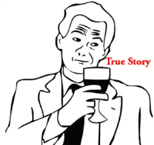 Черно-белый рисунок, состоящий из человека с бокалом вина и надписи True Story (Правдивая история). Обычно используется как заключительная сцена, показывающая, что комикс основан на реальных событиях.
