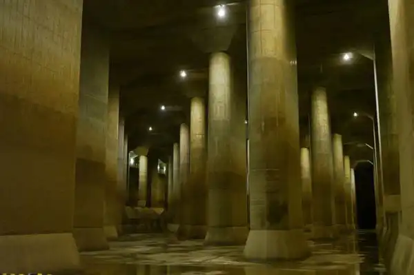 После последнего «стакана» находится подземное водохранилище – колонный зал длиной 177 метров и высотой 25, именованный как «Xрам» (Тhe Temple).