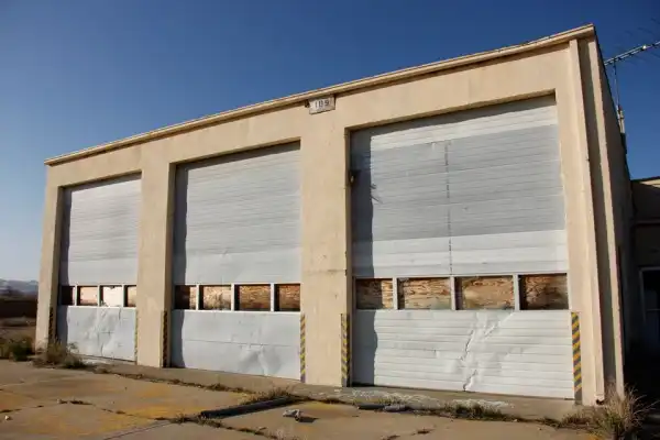 Пожарное отделение, специально построенное для аэродрома, сохранилось немного лучше.