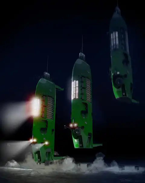 12 водомётов, управляемых джойстиком, способны обеспечить батискафу горизонтальную скорость в 3 узла (5,6 км/ч), а вертикальную – до 2,5 узла. И это только за счёт двигателей.