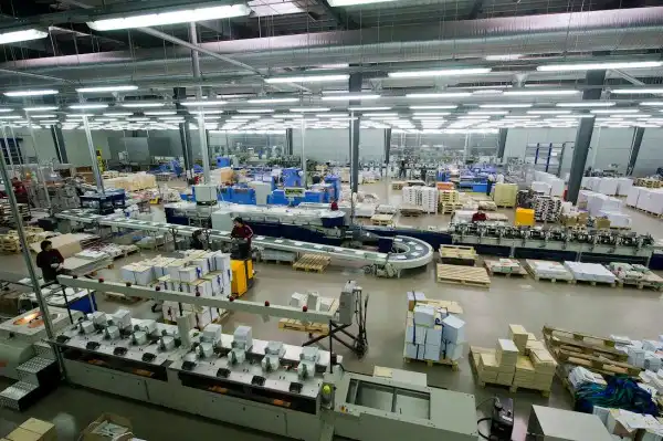 «Парето–Принт» — это специально спроектированное и построенное здание из нескольких огромных, хорошо освещенных, чистых помещений, разделенных на зоны: допечатное производство, печать, переплетное производство, отделка, склад готовой продукции и офисный центр. Всего здесь работают 600 человек, из них 460 заняты непосредственно на производстве в несколько смен.