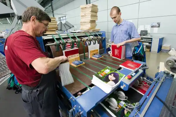 Книжки! Здесь можно было застрять надолго. Чего здесь только не печатают. От гигантских альбомов репродукций до крошечных Библий в переплетах из натуральной кожи. От годовых отчетов с высечкой по обложке и выборочным лаком по тексту до массовой литературы. Есть даже участок золочения обрезов книг — это очень трудоемкая работа, которую раньше у нас в стране вообще не делали.