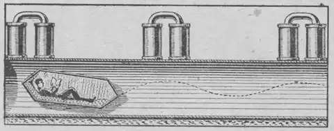 Дэрил Остер начал работать над идеей вакуумного поезда в середине 1980-х годов. Неизвестно, был ли он знаком с предложением своего далёкого предшественника из России – профессора Вейнберга, которое популярно изложил в своей «Занимательной физике, часть 2» Яков Перельман. Впервые эта книга, рисунок из которой мы приводим, вышла в свет в 1916 году и пережила множество изданий.