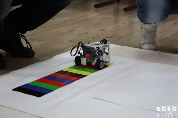 Первое задание первого направления. Робот должен был проехать по дорожке и подсчитать количество полосок каждого цвета.