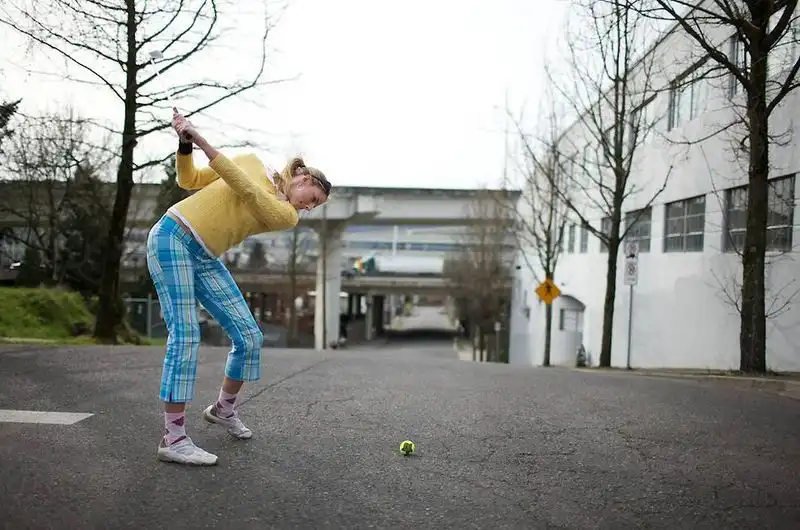 6. Гольфисты выходят на улицы, чтобы отметить Всемирный день городского гольфа… мячиками для тенниса. Фото: Sol Neelman