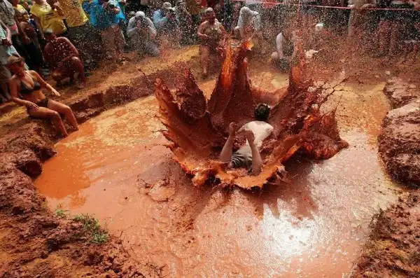 7. Прыжок животом в лужу с грязью является кульминацией Летних Игр Деревенщины в Восточном Дублине, штат Джорджия. Фото: Sol Neelman