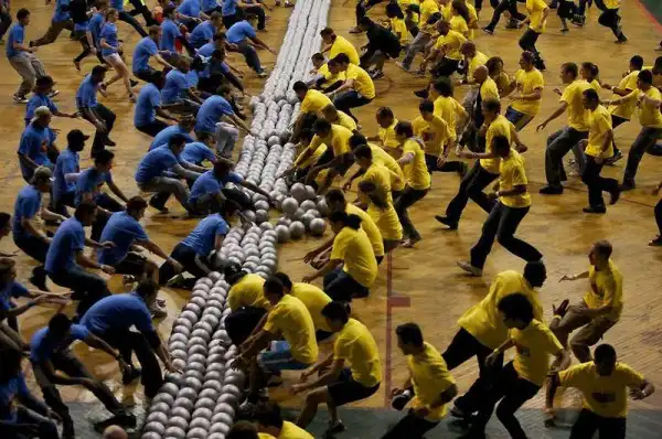 14. Самая большая игра в выбивного на Манхеттене, в которой принимали участие 712 человек с 600 мячами. Фото: Sol Neelman