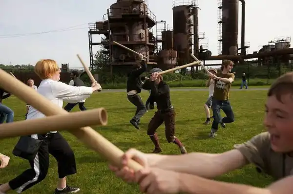 9. Участники Лиги Дуэлянтов на Картонных Трубках на «поле боя» в парке Gas Works Park в Сиэттле. Победитель получит выполненную по специальному заказу трубку. Фото: Sol Neelman