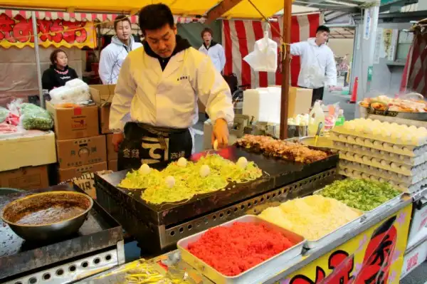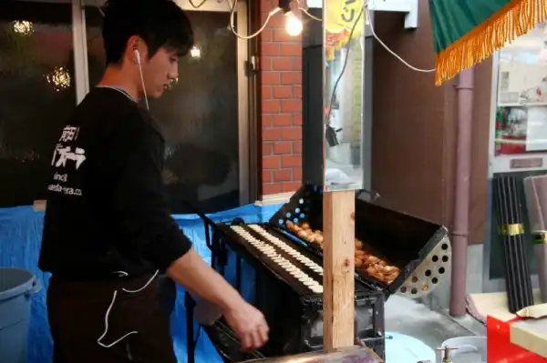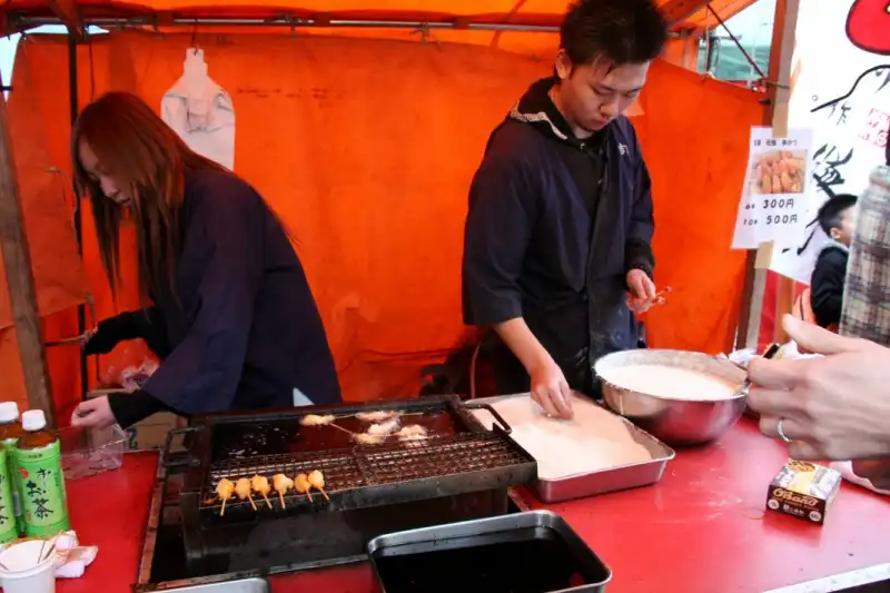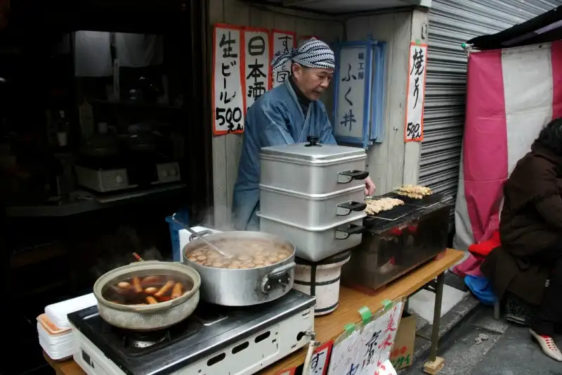 7. На переднем плане – одэн, всякое тушеное. Дальше парень жарит окономияки (типа блинов с капустой, куда понапихано всякого).