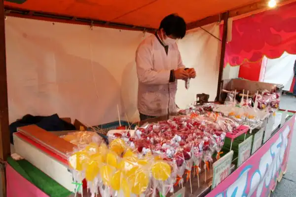 12. Тай-яки. Тоже плюшки из сдобного теста с начинкой в форме рыбки тай. Начинка обычно из бобов адзуки. Но тут девушка явно добавляет что-то другое.