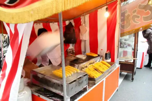 6. Кукуруза. Сначала отваривают, потом обжаривают, поливая (по желанию клиента) соевым соусом с сахаром.