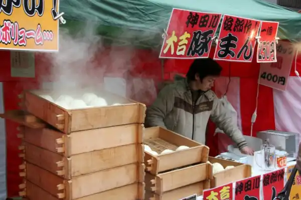 14. Нику-ман. Плюшки из теста с начинкой из мяса (обычно свинина с овощами и специями), сваренные на пару. Тут они особенно огромные.