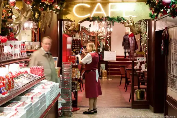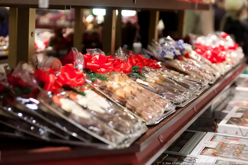 А на первом этаже магазинчик, я был в Любеке перед Рождеством, поэтому и без того яркий и красочно-красный магазин выглядит еще праздничнее