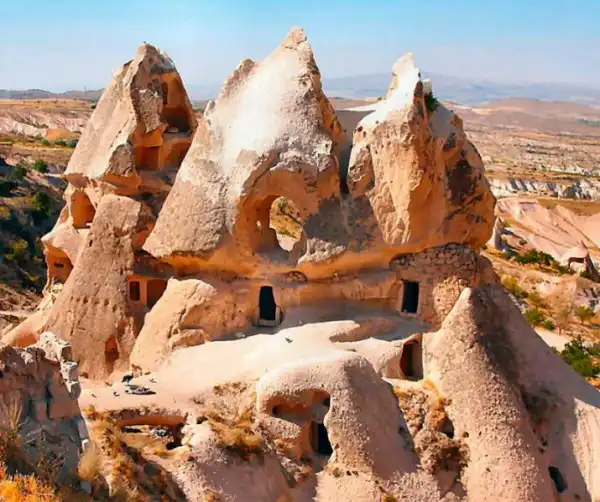 Каппадокия – местность, известная своим сюрреалистическим ландшафтом: вследствие резко континентального климата происходило выветривание горных пород, в результате чего образовывались туфово-базальтовые столбы. Каменная порода оказалось достаточно доступной для обработки, и в первом тысячелетии до нашей эры здесь были образованы многочисленные пещерные поселения, в том числе и монастыри.
